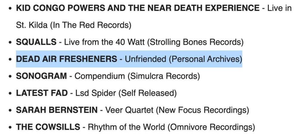 2025 has been a rough year for a lot of people all over the world but we have at least released two new Dead Air Fresheners albums on the bedraggled planet. The first came on April Fools Day but was NOT A JOKE! It is our first ever recording on the classic Pacific Northwest record label Green Monkey Records and features our longstanding collaborator author/poet/noise-diva Jennifer Robin! The album, simply titled Moon , is also blessed with a beautiful cover by New York Times featured artist, the Vancouver BC painter (and author and vocalist of one of our favorite punk rock bands Mecca Normal) Jean Smith!