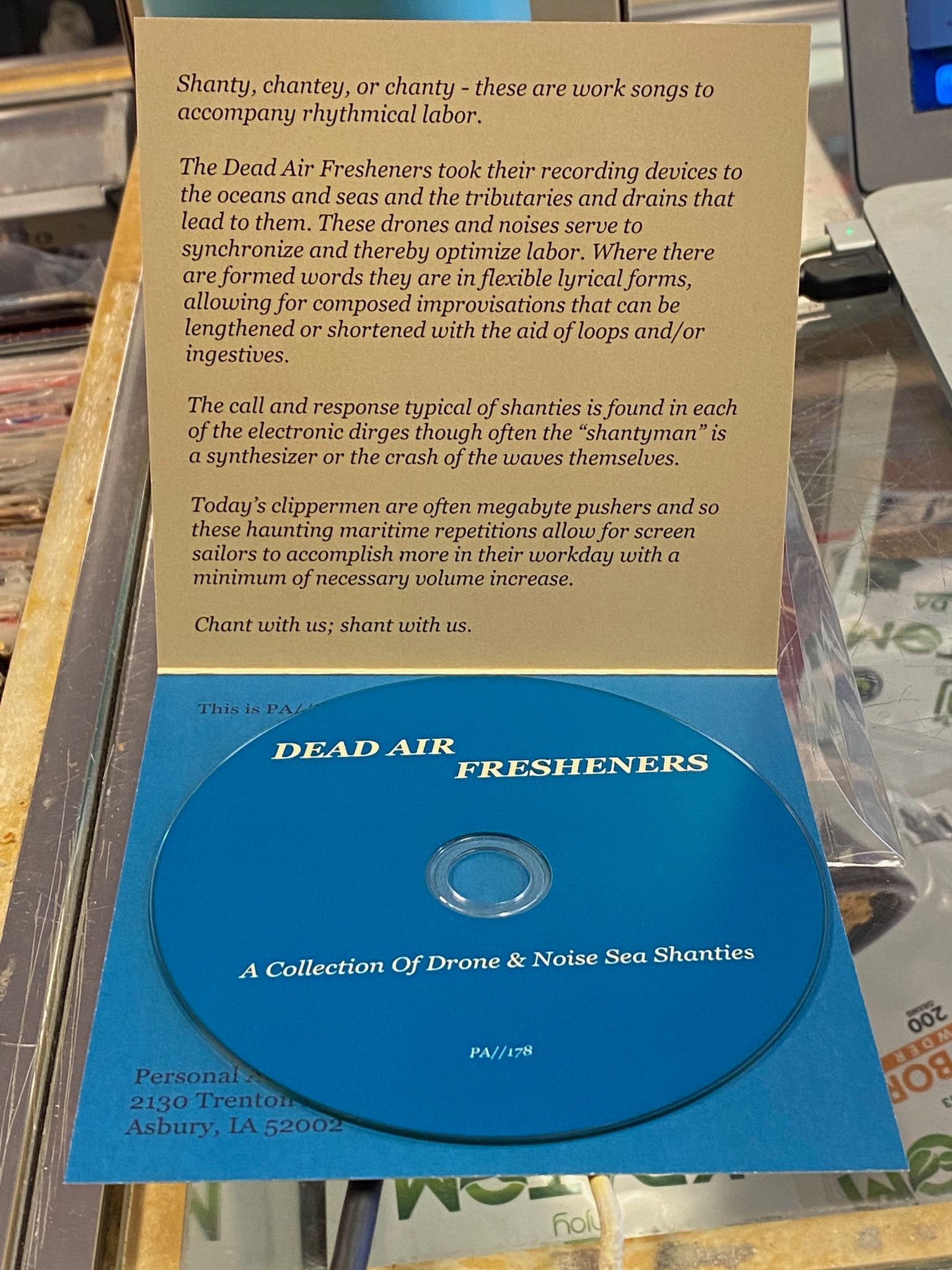 We are excited to announce our brand new album on the killer Personal Archives Recordings label out of Dubuque IA, and run by the incomparable Bob Bucko Jr., A Collection of Drone and Noise Sea Shanties. Released in a limited edition of 50 professionally produced CDs and unlimited digital albums, this record is the product of years of field recordings manipulated with electronics and other instruments to capture the feelings of labor and the ocean.
